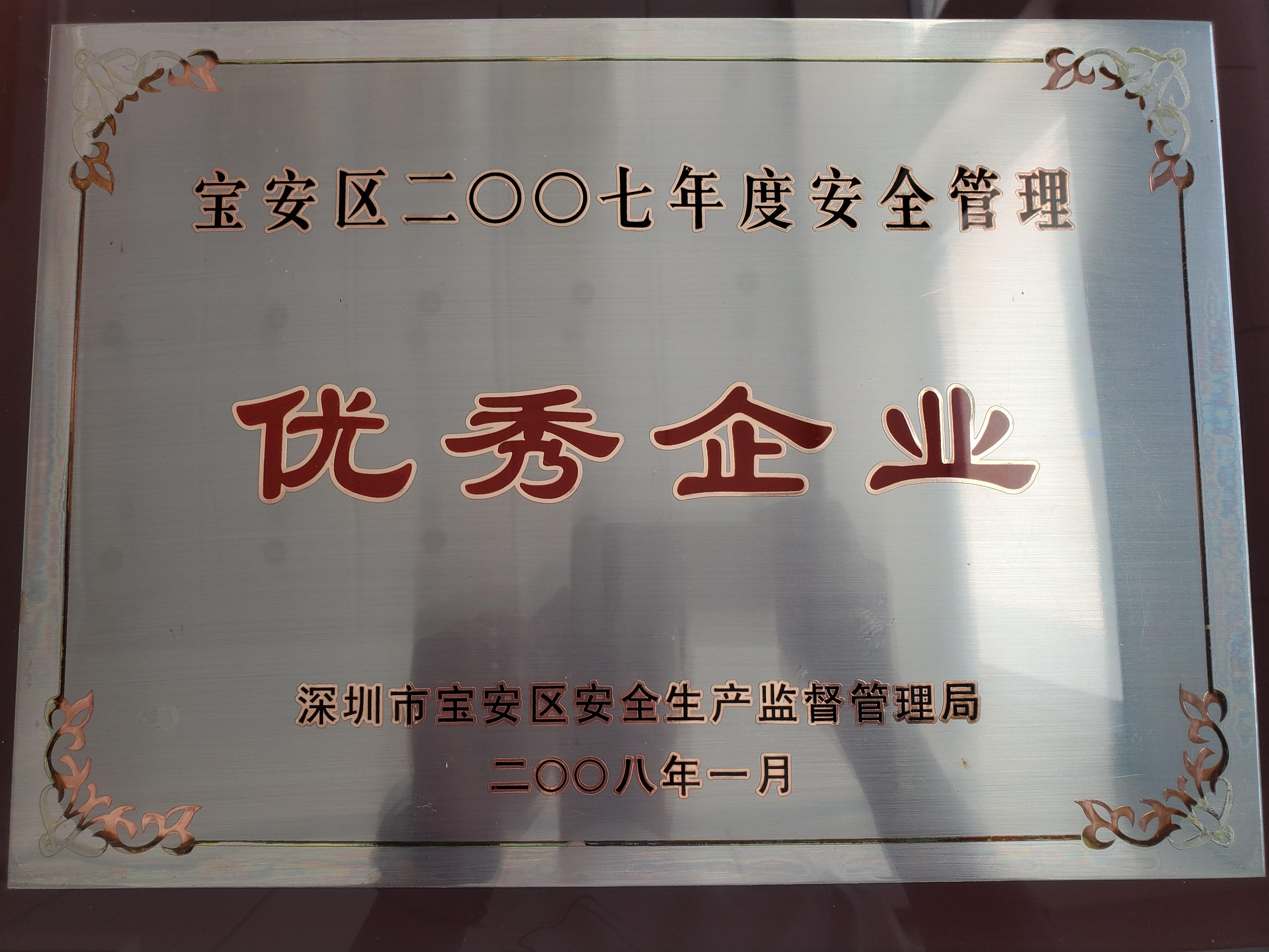 • 寶安區(qū)二零零七年度安全管理優(yōu)秀企業(yè)